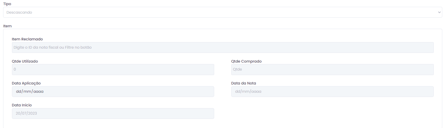 Ao selecionar o tipo da reclamação, no campo onde esta escrito “Selecione um tipo” aparecerá novas informações à serem cadastradas.